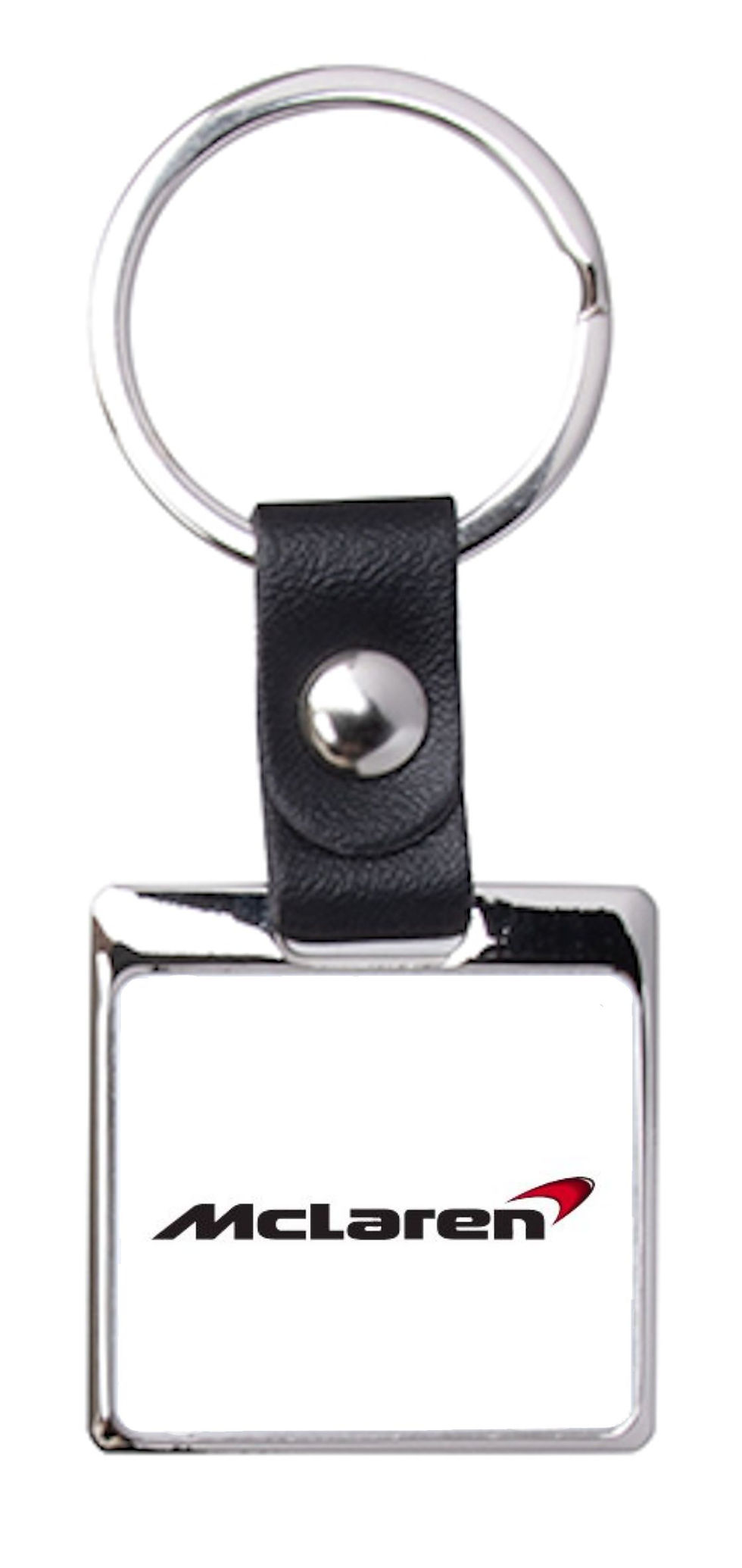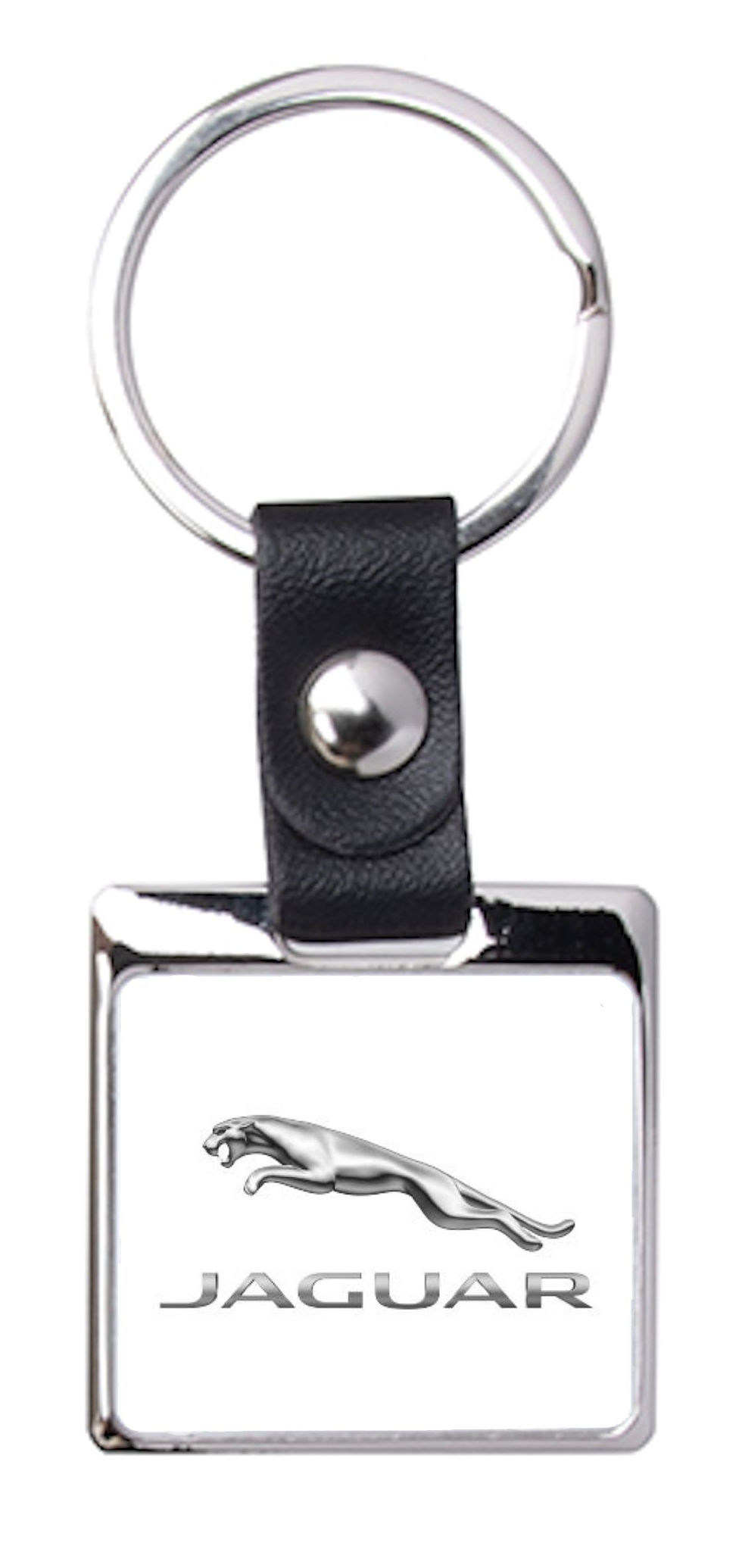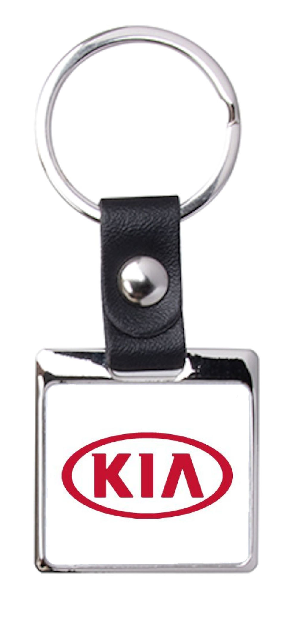 Das Modell SO CHIC ist ein Schlüsselanhänger aus hochwertigem Kunstleder mit einem quadratischen Medaillon aus verchromtem Metall.